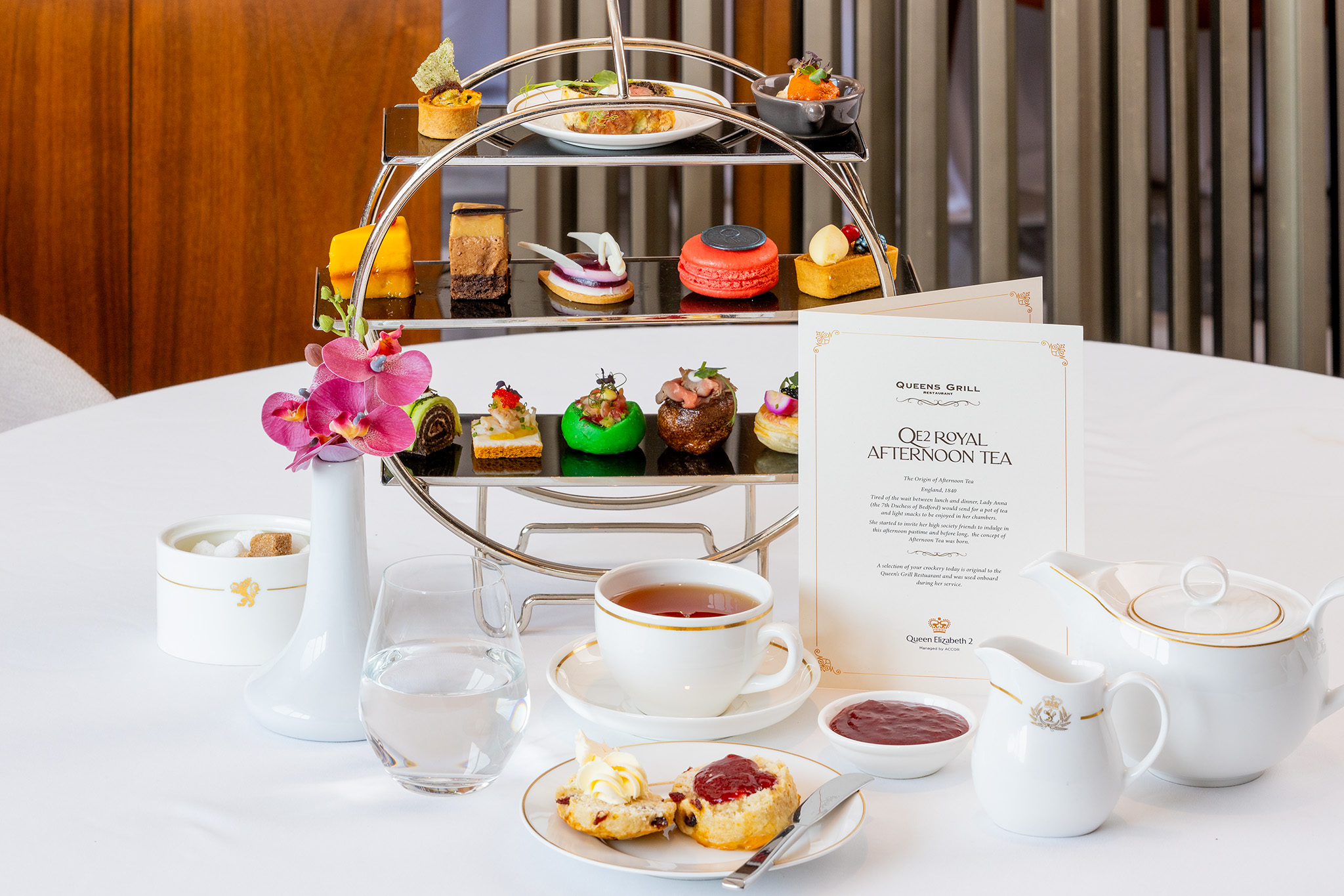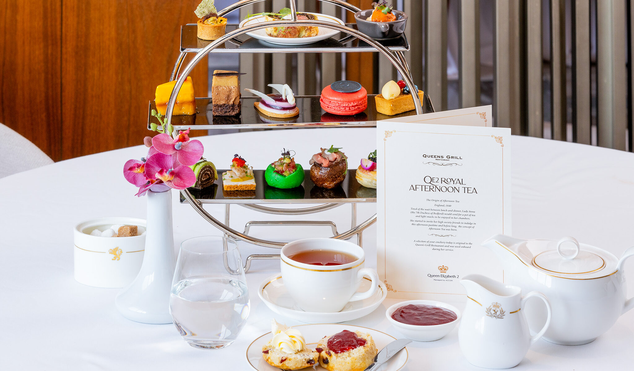 من الجمعة إلى الأحد، استمتعوا بتجربة شاي بعد الظهر الملكي وسط أجواء بريطانية راقية على متن كوين إليزابيث 2. تذوّقوا تشكيلة مميزة من المقبلات المالحة، السندويشات الشهية، كعك السكونز الطازج، والحلويات الدقيقة، مع أجود أنواع الشاي – جميعها تُقدَّم بأسلوب كوين إليزابيث 2 الكلاسيكي. يمزج المكان بين التقاليد العريقة والأناقة المعاصرة، مما يجعله وجهة فريدة لتجربة شاي فاخرة.