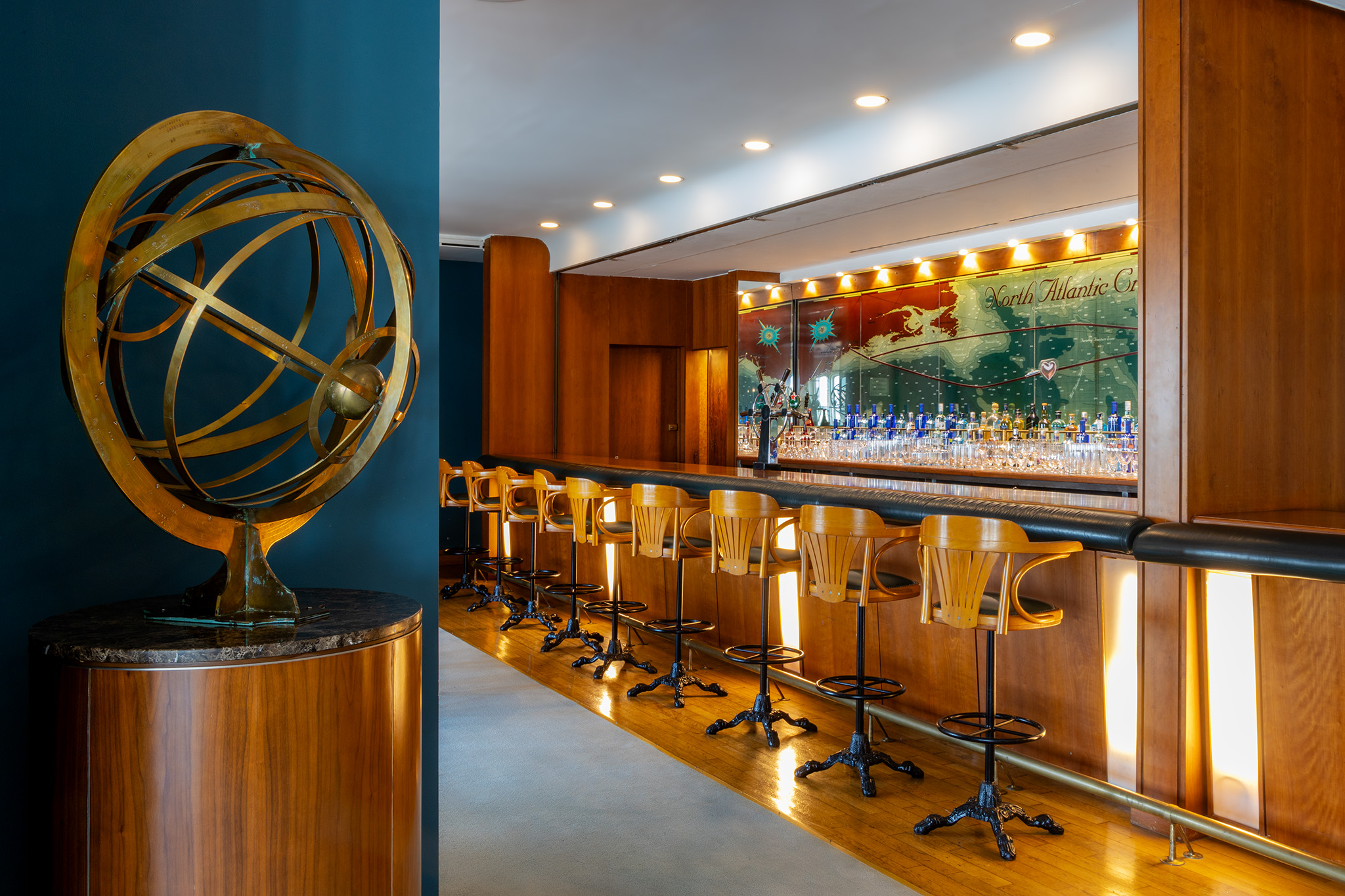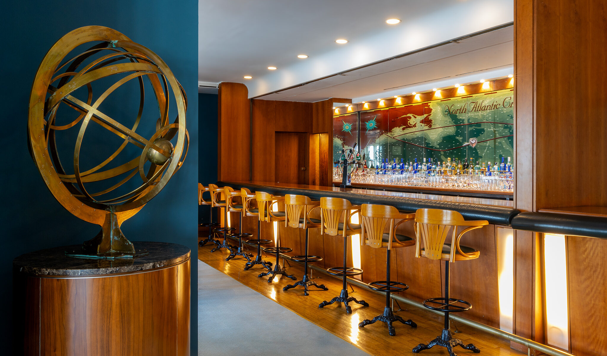 يقع في الدك الربعي من فندقنا العائم، ويُعد ذا تشارت روم كبسولة زمنية لتراث الملاحة البحرية، إذ يحتفظ بتصميمه البحري الأصلي، إلى جانب خريطة الطريق الزجاجية الأيقونية التي كانت ترشد الرحلات الأسطورية في الماضي.