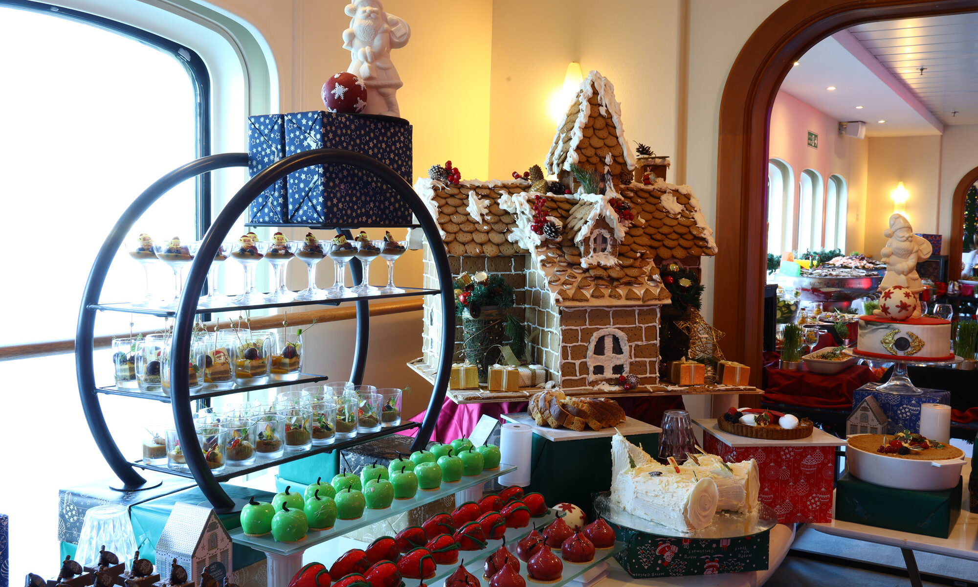 استمتعوا مع عائلاتكم وأصدقائكم بتجربة طهي راقية تزخر بأشهى الأطباق الكلاسيكية والعالمية، من الديك الرومي المحشو بالكستناء وصلصة التوت البري وكرنب بروكسل، إلى مجموعة متنوعة من محطات المأكولات البحرية واللحوم المشوية.
