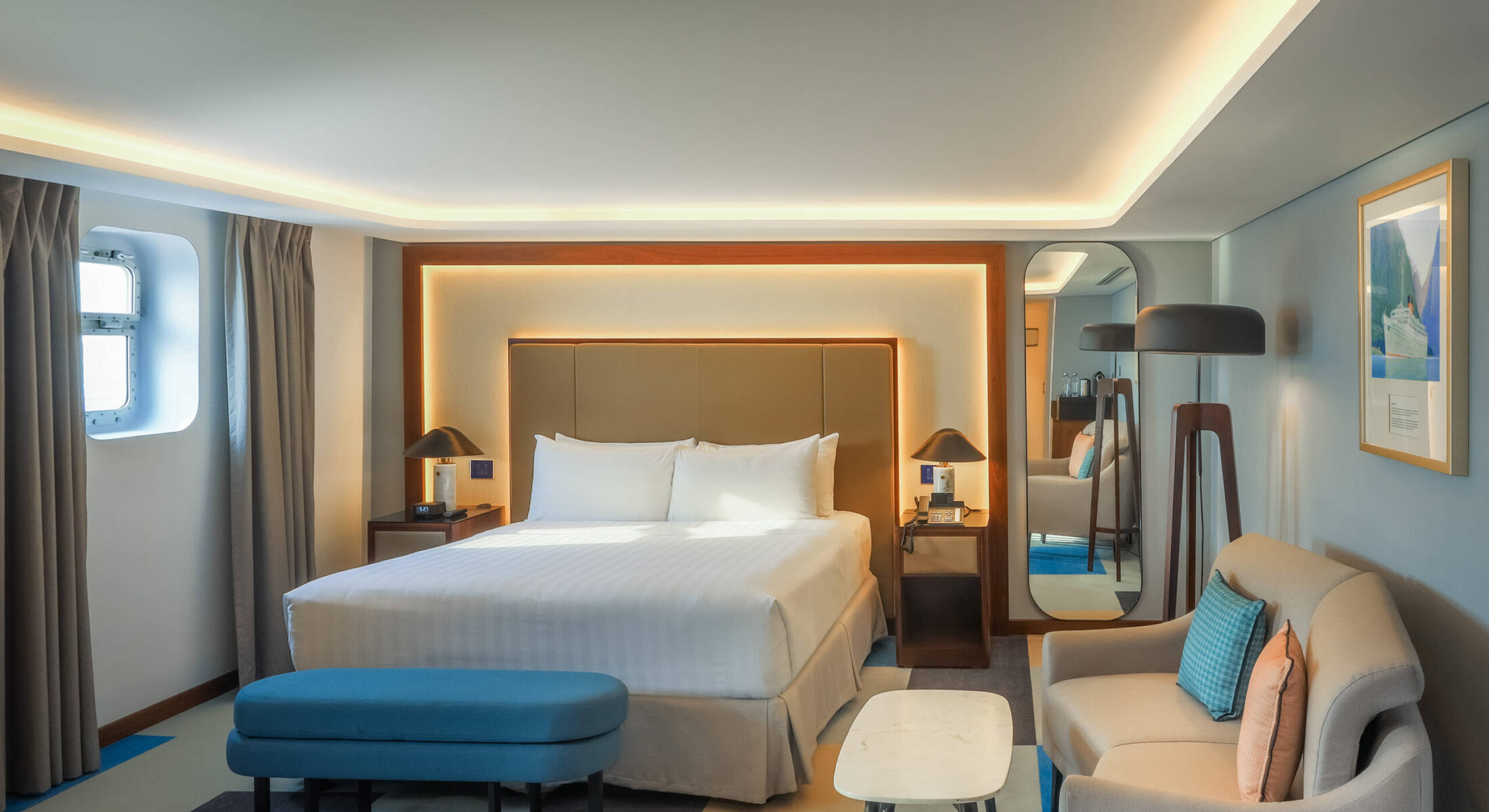 تأخذكم غرفة القبطان الفاخرة في رحلة عبر الزمن عبر تصاميمها ولمساتها التراثية التي تعكس أناقة أجنحة القيادة الخاصة من الدرجة الأولى.