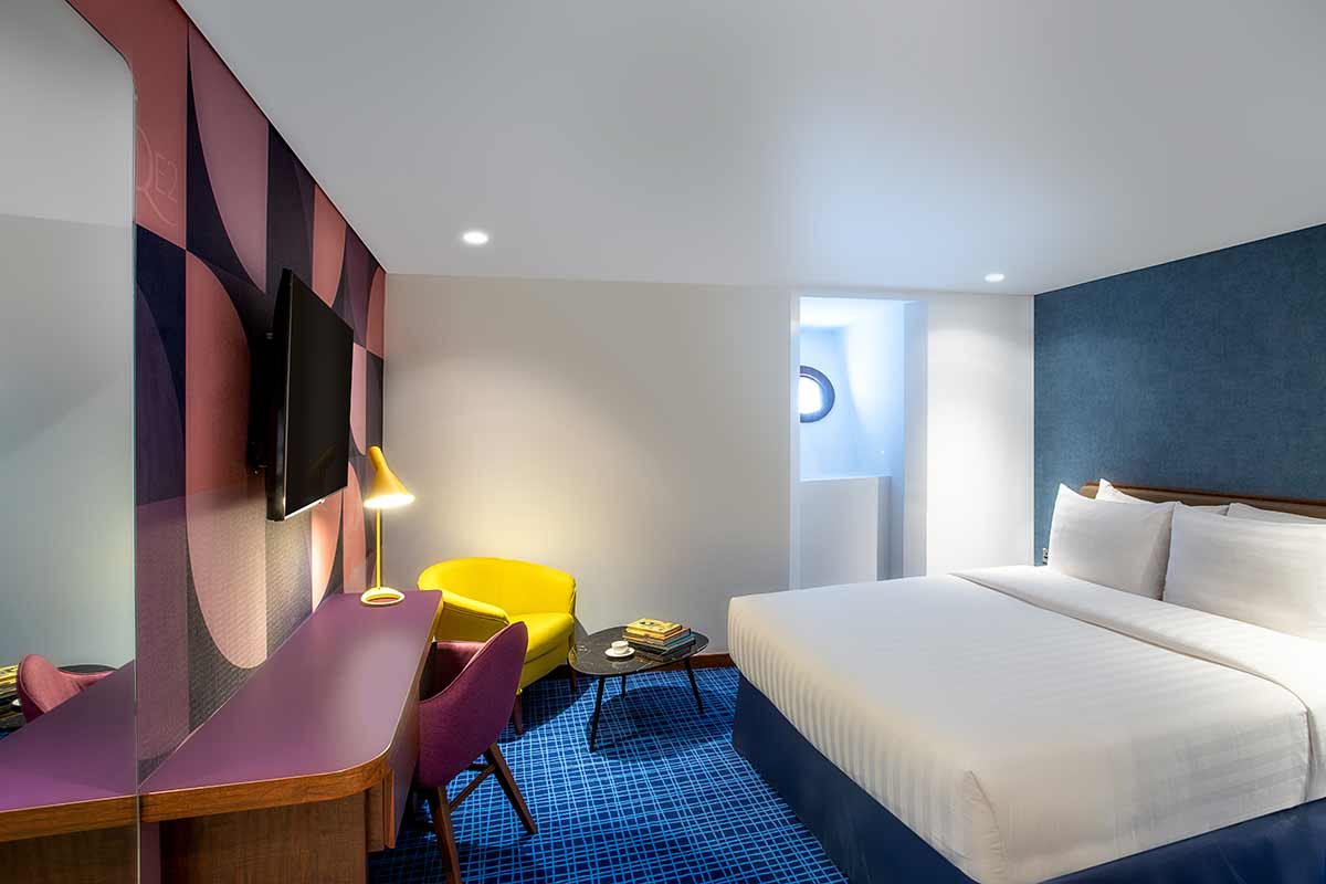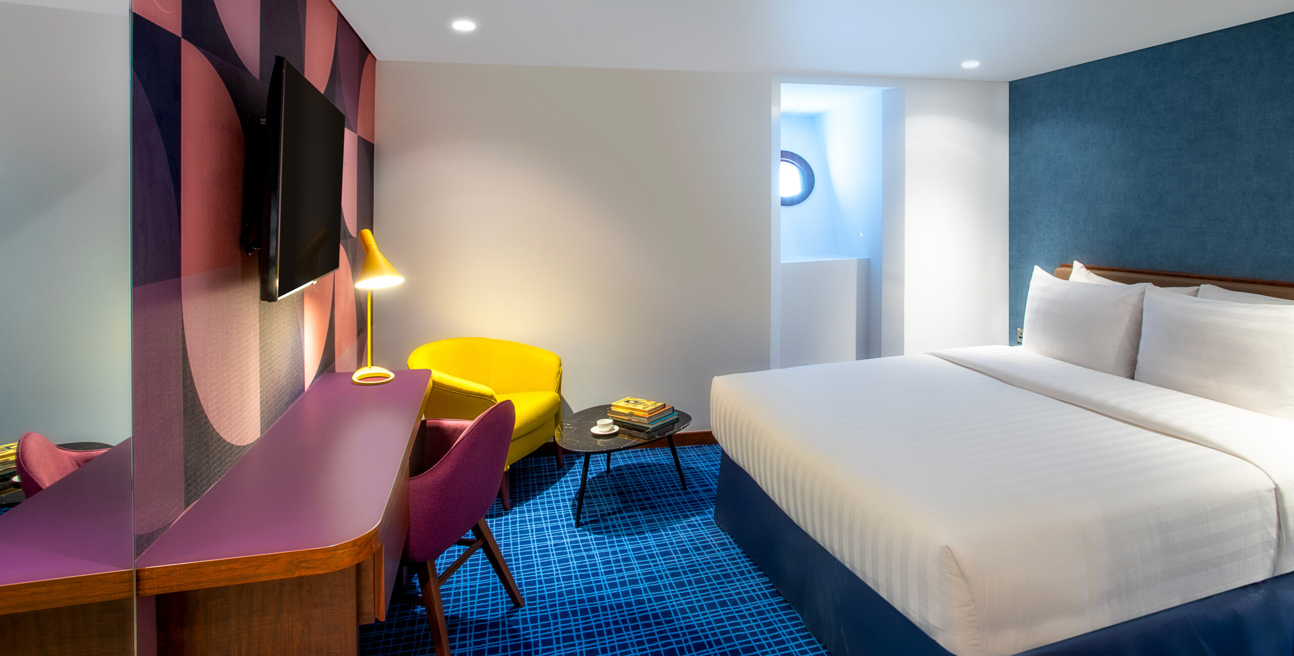 يمكنكم اختيار غرفنا الديلوكس الرحبة في الطابقين الأول والثاني للاستمتاع بالاسترخاء في أجواء أنيقة تتميز بألوانها المحايدة والناعمة. تعدّ هذه الغرف الخيار الأمثل للعائلات والمجموعات الكبيرة، وتقدم تجربة أصيلة مستوحاة من الرحلات البحرية على متن السفن وتكتمل روعتها مع لمسات إضافية من وسائل الراحة تشعرون معها كما لو كنتم في منزلكم.
