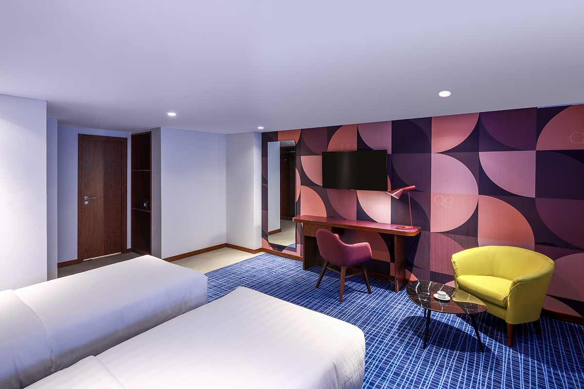 توفّر الغرفة خدمة واي فاي مجانية وإطلالة على المدينة، وسرير مزدوج، وخزنة، ولوازم تحضير القهوة والشاي، وحمّاماً مجهزاً بدُش.