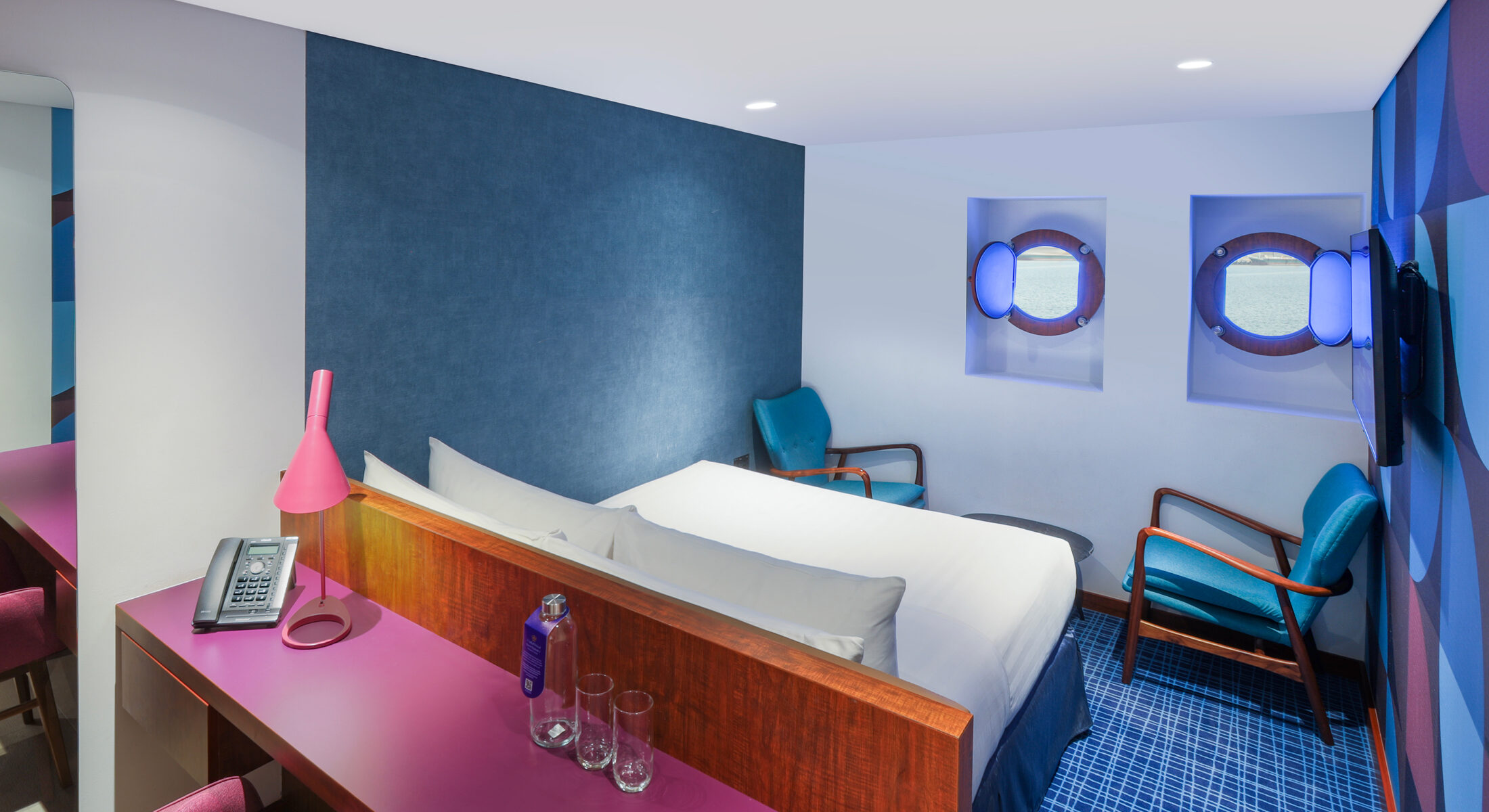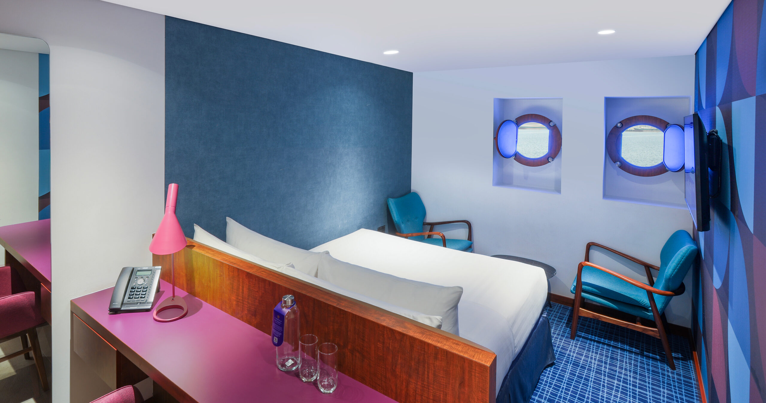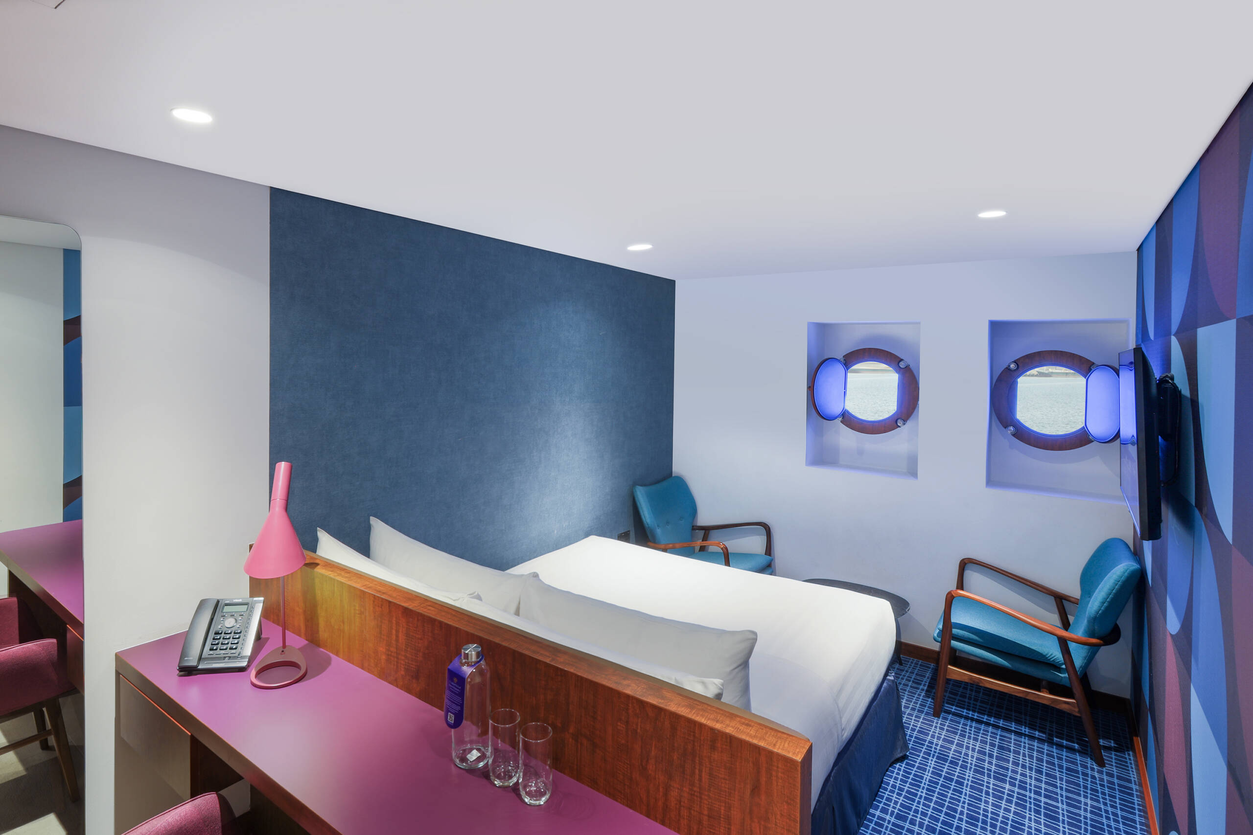 تضم الغرف القياسية العائلية المجهّزة جيداً غرف بسرير كينج وغرفة إضافية بسرير فردي، لتمنحكم إقامة عائلية مريحة على متن السفينة، مع نوافذ دائرية توفّر أروع الإطلالات على مناظر المدينة الساحرة.