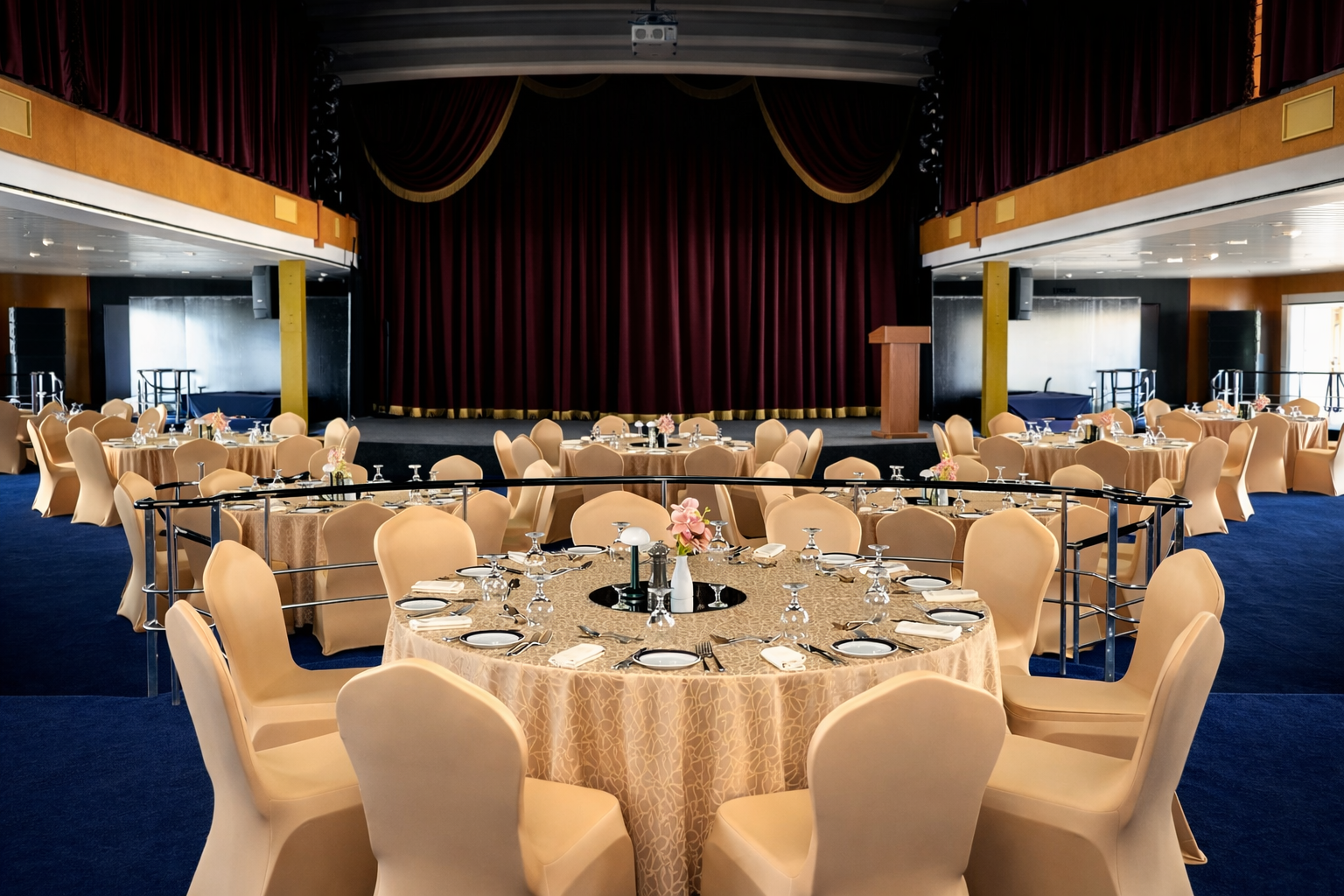 To make the most of this grandiose private party and event venue, utilise the theatre-style stage for entertainment throughout your night.