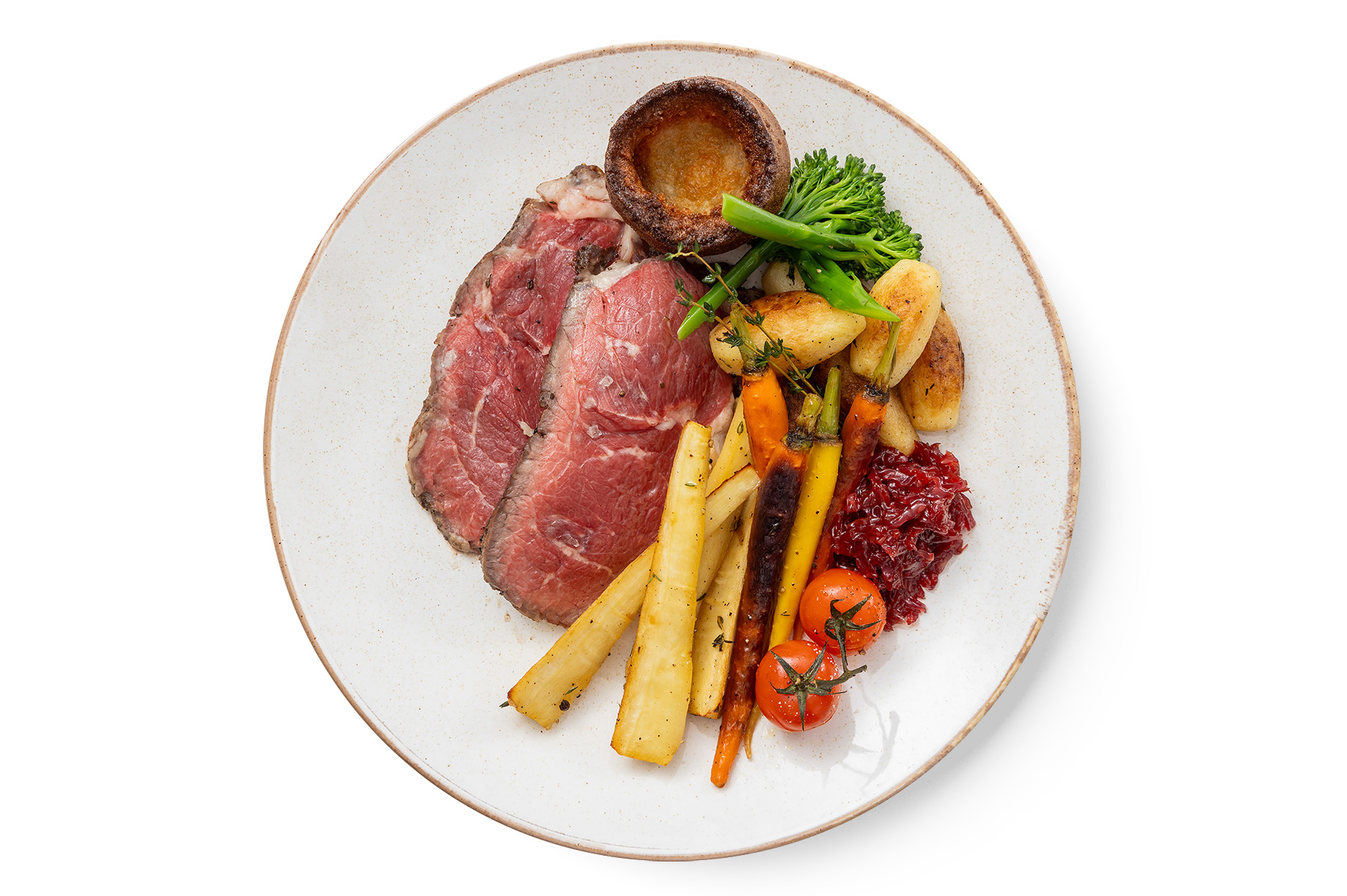 Sides include crispy roast potatoes, honey-glazed carrots, broccolini and parsnips, cheesy baked cauliflower, Yorkshire pudding, and rich, velvety gravy. All expertly prepared by the QE2’s culinary team.