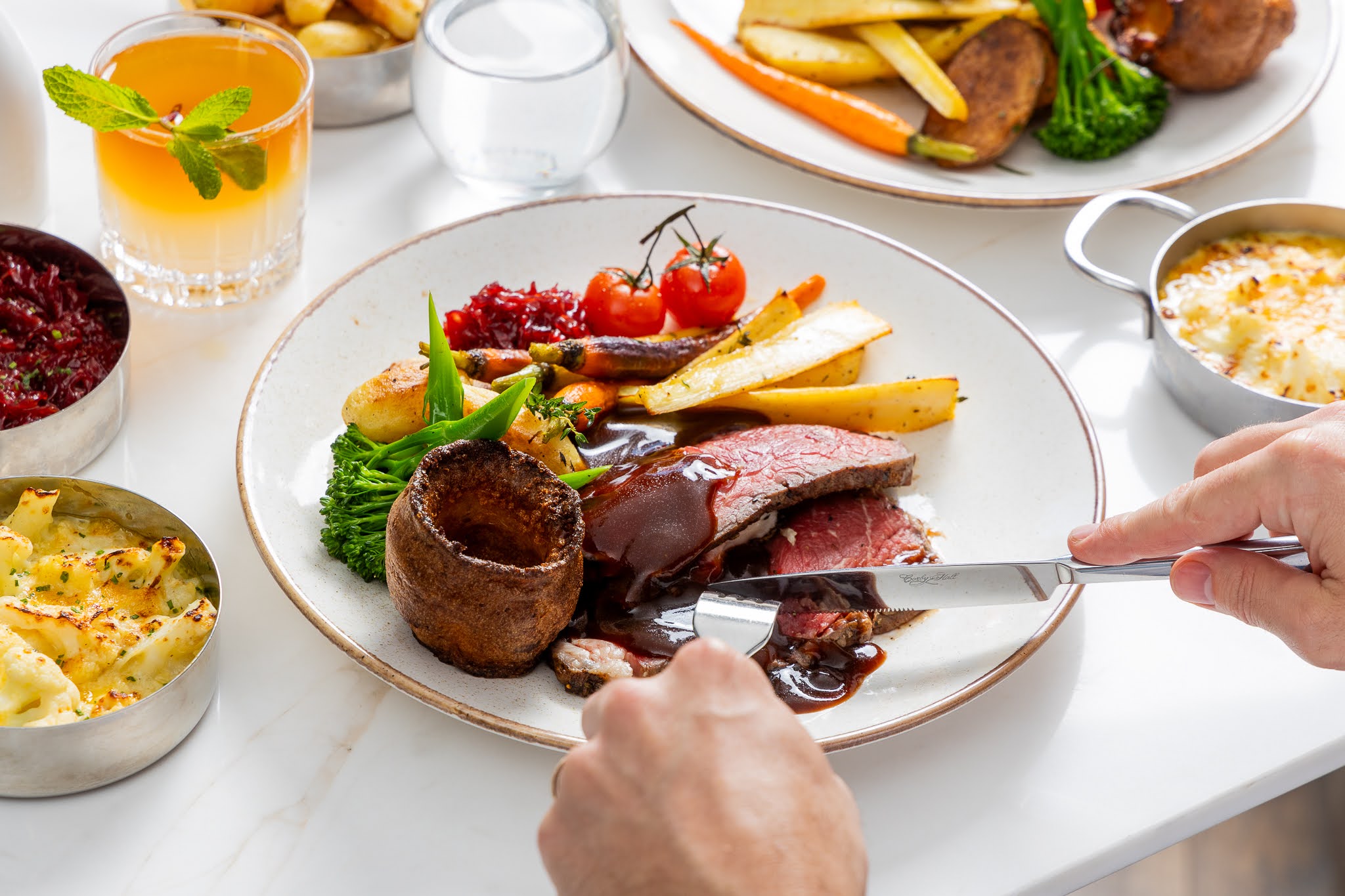 Available every Sunday from 12:30 PM to 3:30 PM, guests are invited to enjoy a selection of perfectly cooked roasts, including Wagyu Beef Rib Eye, Rolled Lamb Leg, and Classic Roast Chicken – each served with all the traditional trimmings.